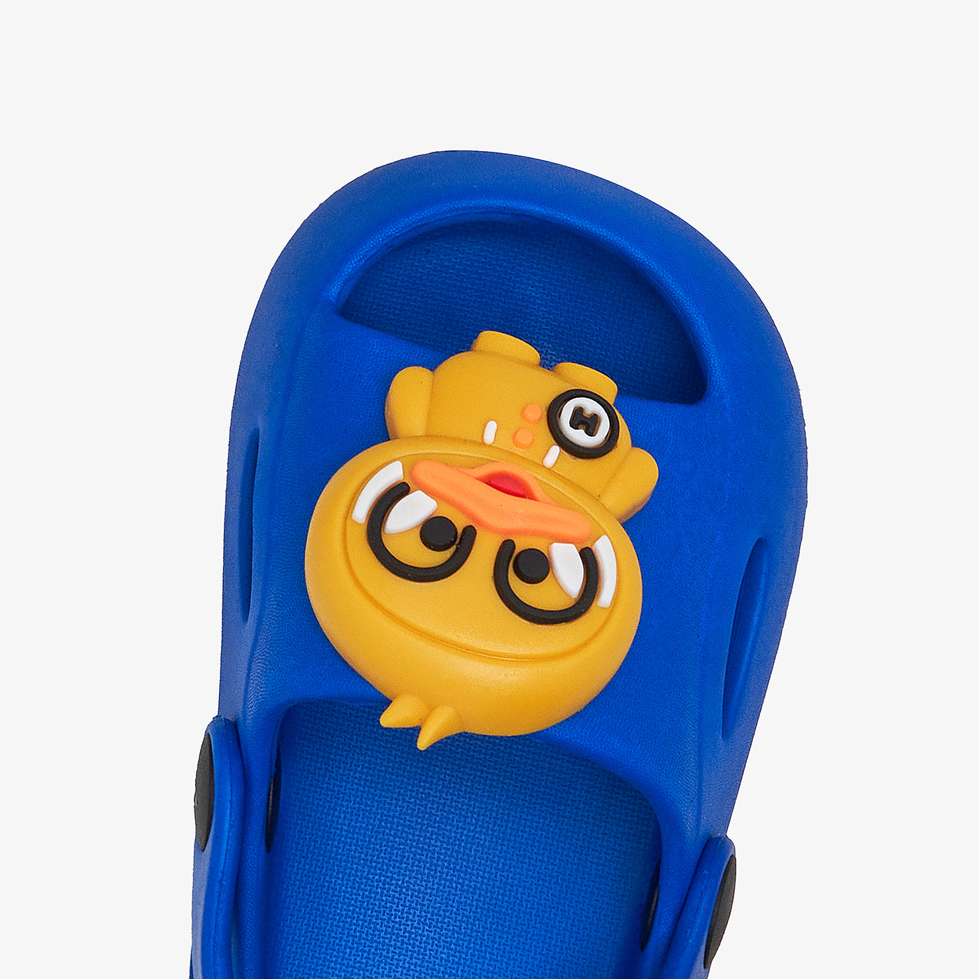 These clogs have a cartoon-style upper, a rounded toe, and a cushioned insole.