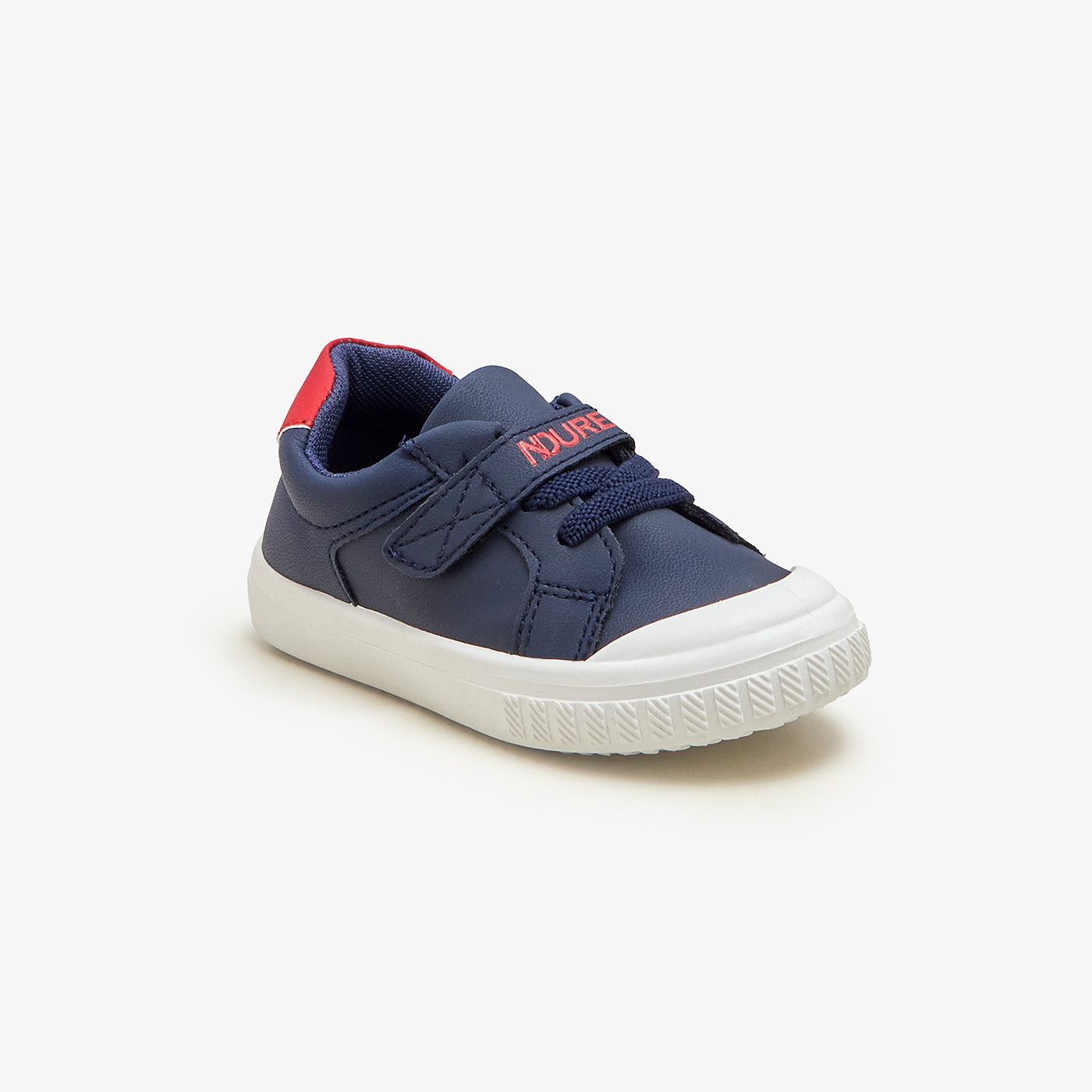 These shoes have a slip-on style with velcro, a round toe shape, and padded insole.