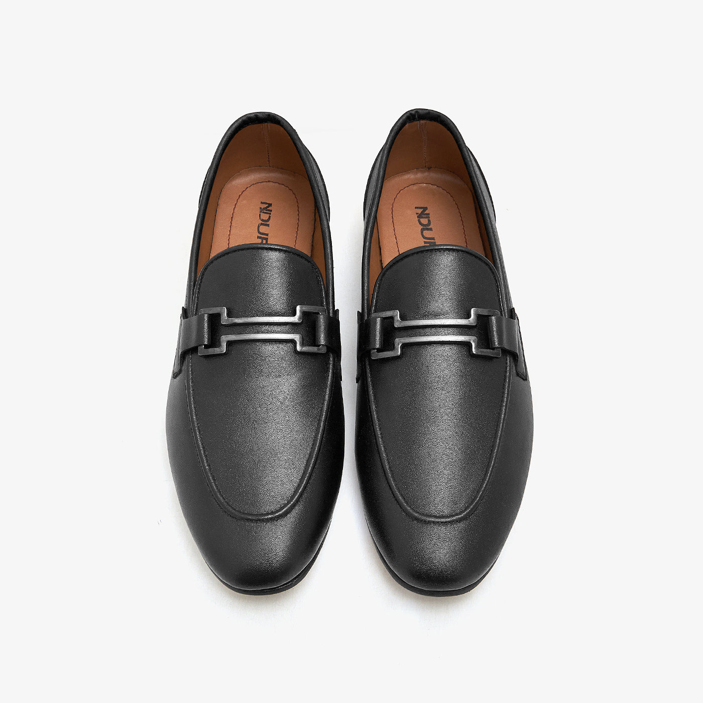 Refined and timeless, these loafers feature smooth synthetic leather and a polished metal accent. The modern silhouette makes them perfect for both formal and smart-casual looks.