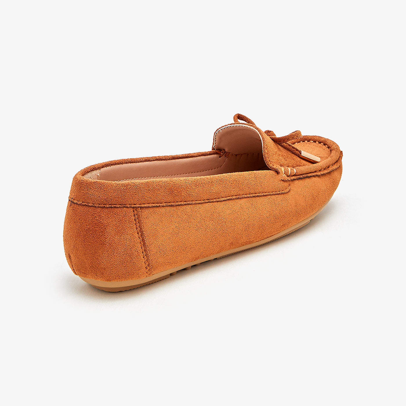 These moccasins feature a bow adorned with gold ends and round toe shape.